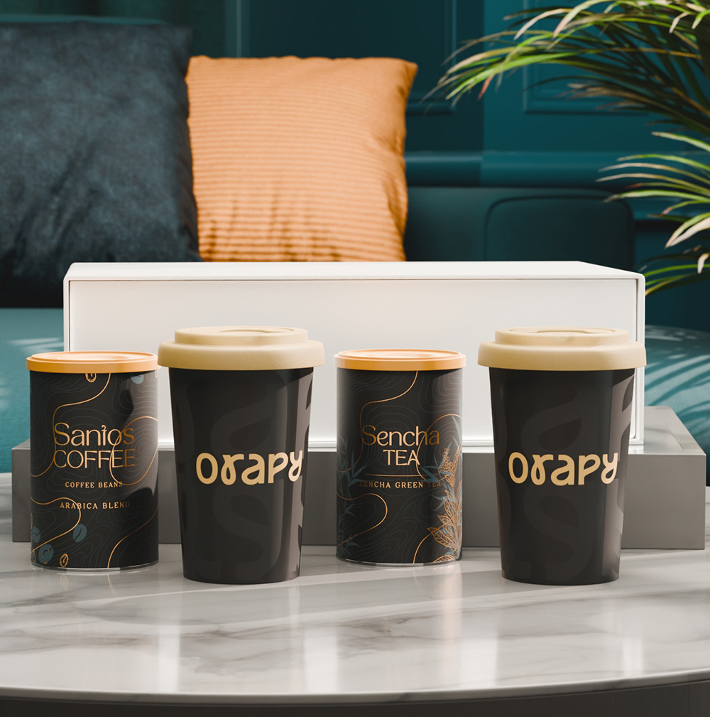 Das Set mit den mobilen Freedom-Bechern verbindet Mobilität mit subtilem Branding. Im Inneren befinden sich außerdem ausgewählter „Santos Coffee“ und „Sencha Tea“ in eleganten Dosen. Das Ganze ist in einer exklusiven, schneeweißen Verpackung mit Magnetverschluss verpackt. Der Deckel ist in folgenden Farben erhältlich: Weiß, Orange 021C, Cool Gray 7, Rot 200C, Marineblau 294C, Braun 4695C, Schwarz, Rosa 4064C, Blau 2144C, Eukalyptus 5493C, Desert Sand 2310C.